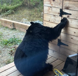 • Stay Vigilant: Do not disturb them, do not attempt to feed them, and avoid risky behavior. If you see an animal, back away slowly and make noise to signal your presence (we have bear sprays available in the house, of course).