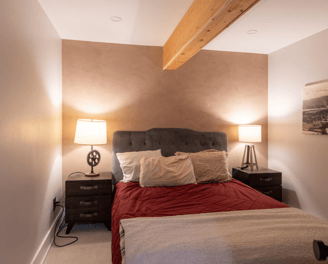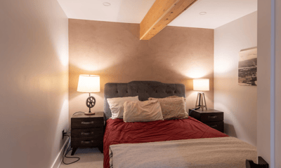 Chambre 1 au sous sol avec un lit Queen Size.