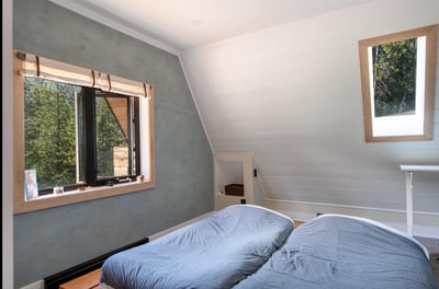 Chambre avec 2 lit futons simple , chambre enfant à l'étage avec fenêtre.